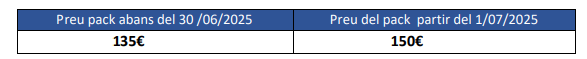 El preu del pack es manté respecte l’any passat, tot i que aquest any inclou la motxilla. Totes aquelles comandes que es facin abans del 30/06/2025 tindran un 10% de descompte.