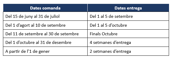 És MOLT IMPORTANT que feu la comanda de les equipacions durant el mes de juny o principis de juliol, per assegurar que les equipacions arribaran al setembre.
